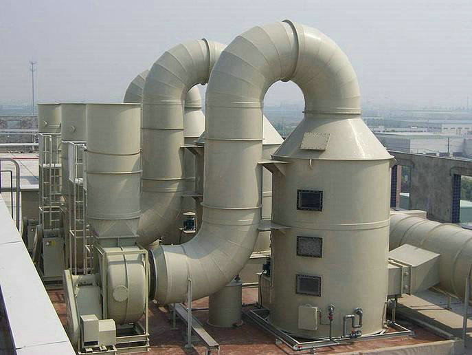 廢氣進入聚丙烯廢氣吸收塔,經氣體分配器的分配后,在行走的過程中,滿足霧化器霧化液體,氣體和液體完全飽和接觸和物理吸收和化學反應,中和或吸收液體液箱,通過除霧器標準的霧回大氣層。